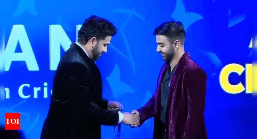 NEW DELHI:Agni Chopra, offspring of filmmaker Vidhu Vinod Chopra and film critic Anupama Chopra, was delighted to receive the Madhavrao Scindia Award for Top Run Getter in Ranji Trophy Plate League at the BCCI annual awards from his role model and Indian skipper Rohit Sharma.