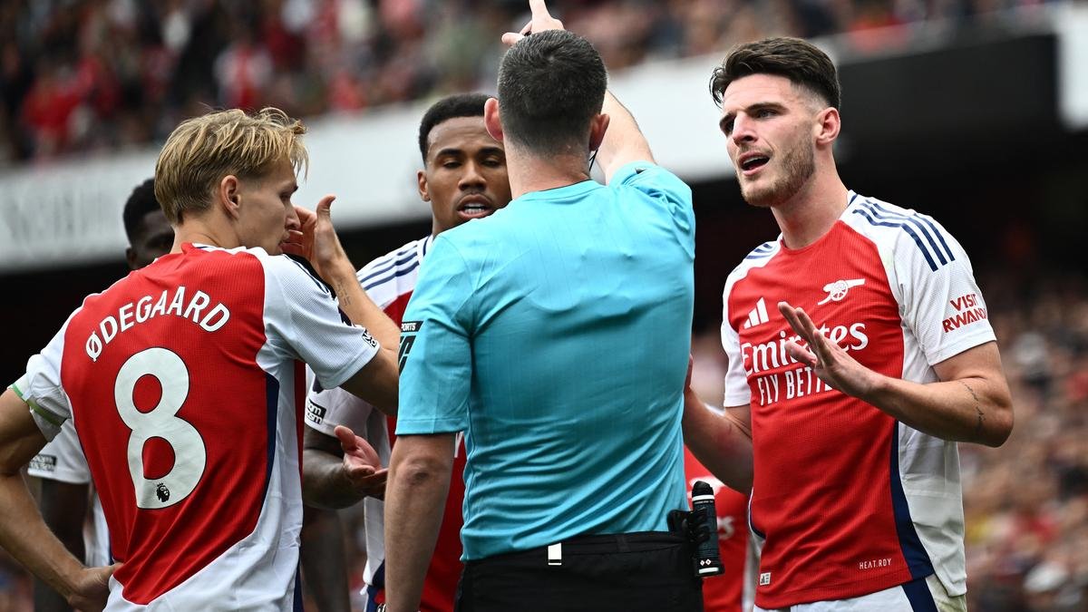 Arsenal manager Mikel Arteta was left fuming at what he called inconsistent refereeing after Declan Rice’s sending off led to Arsenal dropping its first points of the Premier League season in a 1-1 draw against Brighton on Saturday.
