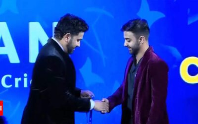 Agni Chopra and Rohit Sharma (BCCI Photo) NEW DELHI:Agni Chopra, offspring of filmmaker Vidhu Vinod Chopra and film critic Anupama Chopra, was delighted to receive the Madhavrao Scindia Award for Top Run Getter in Ranji Trophy Plate League at the BCCI annual awards from his role model and Indian skipper Rohit Sharma.His remarkable achievement of…