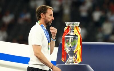 England manager Gareth Southgate looks dejected as he walks past the trophy after receiving his runners up medal. | Photo Credit: REUTERS England manager Gareth Southgate looks dejected as he walks past the trophy after receiving his runners up medal. | Photo Credit: REUTERS