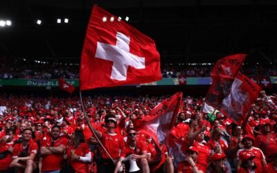 Photo: Dean Mouhtaropoulos DUSSELDORF, GERMANY – JULY 06: A general view of fans of Switzerland as they enjoy the pre match atmosphere prior to the UEFA EURO 2024 quarter-final match between England and Switzerland at Düsseldorf Arena on July 06, 2024 in Dusseldorf, Germany. (Photo by Dean Mouhtaropoulos/Getty Images) Photo: Alex Livesey DUSSELDORF, GERMANY –…