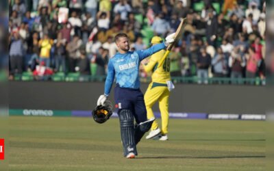 Josh Inglis celebrates with Glenn Maxwell after scoring century during the ICC Champions Trophy cricket match between Australia and England in Lahore. (AP/PTI) Josh Inglis delivered an unforgettable performance, scoring his first ODI century with an impressive 120 not out, eclipsing Ben Duckett’s stellar 165. This remarkable effort helped Australia achieve a record chase, defeating…