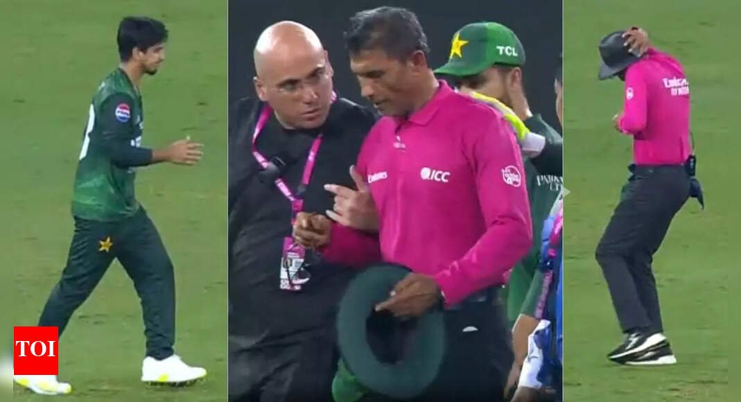 Chaos on the field! Umpire hit on ear by Pakistan fielder’s throw, play halted in Dubai | Cricket News