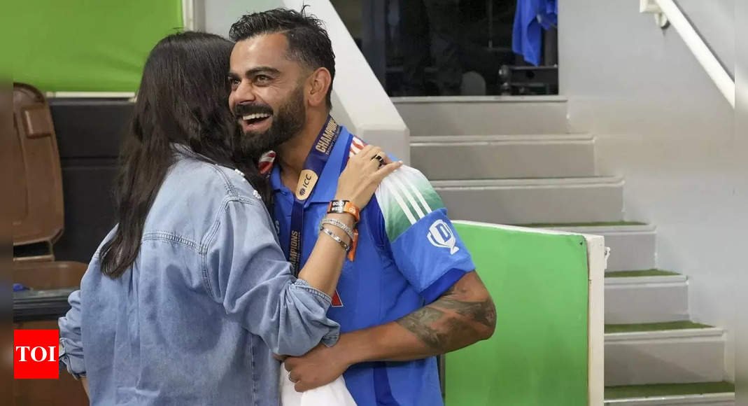 Virat Kohli and Anushka Sharma after the 2025 Champions Trophy final. (AP Photo)