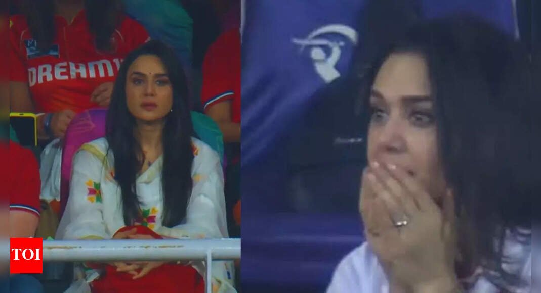 NEW DELHI: Preity Zinta’s cheerful smile quickly faded into visible concern as the Punjab Kings suffered a nightmarish start in their IPL 2025 Qualifier 1 clash against Royal Challengers Bengaluru. The co-owner of PBKS, who was initially spotted smiling and cheering from the stands, looked visibly tense as her team lost four crucial wickets inside the Powerplay — Priyansh Arya, Prabhsimran Singh, Shreyas Iyer, and Josh Inglis — all falling in rapid succession.The collapse began with Priyansh Arya’s dismissal. Trying to play a crisp drive off Yash Dayal, Arya ended up hitting the ball straight to Krunal Pandya at cover. It was a simple take, and Dayal gave RCB the early breakthrough they were looking for.