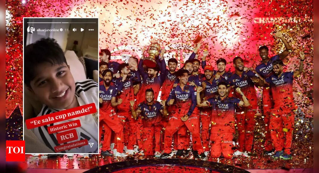 RCB’s IPL triumph has elicited wild reactions on social media, with congratulatory messages, celebrations and excitement pouring in from all sides. One such moment came from Allu Arjun’s 11-year-old son Allu Ayaan, who was overcome with emotion as Virat Kohli and Royal Challengers Bengaluru made their way to a first-ever IPL crown. In an Instagram story shared by the Tollywood actor, his son, a passionate RCB fan, displayed intense emotions after Royal Challengers Bengaluru (RCB) secured their first IPL trophy in 18 years, celebrating by pouring water on his head and expressing his admiration for Virat Kohli. Go Beyond The Boundary with our YouTube channel. SUBSCRIBE NOW!He also expressed relief at no longer being able to use the phrase ‘Ee Saala Cup Lollipop.’