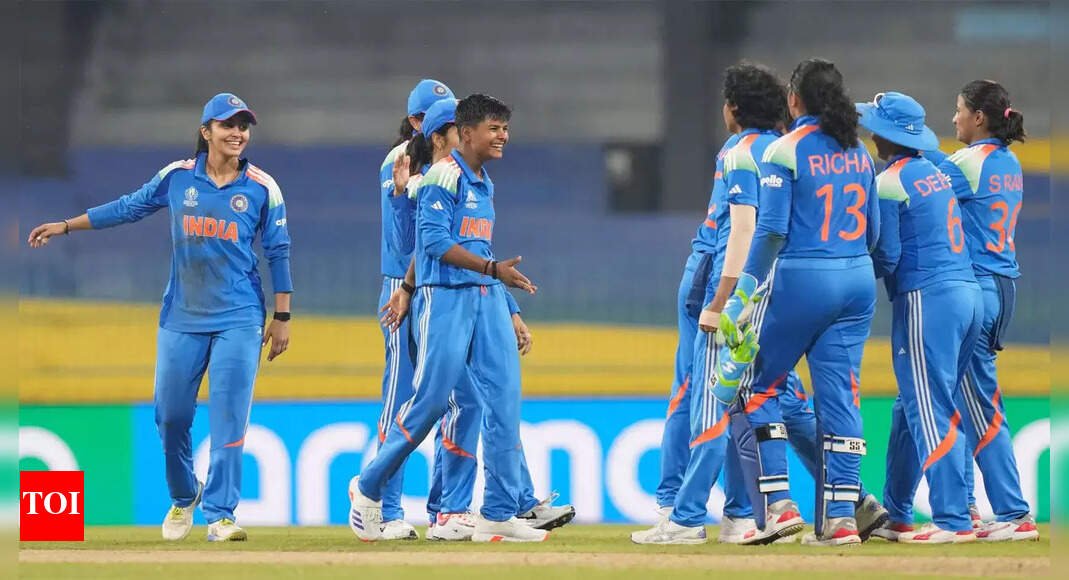 NEW DELHI: The contrasting knocks of Harleen Deol and Richa Ghosh, backed by disciplined bowling, propelled India to a commanding 88-run victory over Pakistan in a drama-filled ICC Women’s World Cup clash in Colombo on Sunday. Sent in to bat on a slow track, India found stability in Deol’s composed 46 off 65 balls and the blitzkrieg of Richa Ghosh, whose 20-ball 35* at the death pushed India to a competitive 247 all out.Go Beyond The Boundary with our YouTube channel. SUBSCRIBE NOW!Despite a series of early miscues, including a controversial toss in Pakistan’s favour and a 15-minute delay due to bugs invading the field, India’s bowlers dismantled Pakistan’s chase. Kranti Gaud (3/20) spearheaded the effort, tearing through the top order, while spinners Deepti Sharma (3/45) and Shree Charani (2/38) cleaned up the middle and lower order. Sidra Amin’s valiant 81 off 106 balls and Natalia Pervaiz’s 33 offered resistance, but the rest of Pakistan’s lineup faltered. With this win, India extended their perfect ODI head-to-head record against Pakistan to 12-0.As it happened: India vs PakistanHarleen Deol anchors India inningsIndia’s batting stumbled on a sluggish surface early on, with opener Smriti Mandhana (23) falling inside the powerplay while Pratika Rawal (31) offered a brisk start. Harleen Deol’s steady 46 stitched together partnerships at crucial moments, including a 39-run stand with Harmanpreet Kaur (19) and 45 runs with Jemimah Rodrigues (32). Deol’s composed strokeplay anchored India through a tricky middle overs phase, providing the platform for Richa Ghosh to accelerate towards the end.Harmanpreet’s dismissal to an inside edge momentarily halted momentum, and Jemimah Rodrigues fell for 32 after an early reprieve on a no-ball. Nevertheless, the experienced pair of Deepti Sharma (25) and Sneh Rana (20) added a 42-run partnership, keeping India competitive before Richa Ghosh’s late flurry pushed the team to 247.