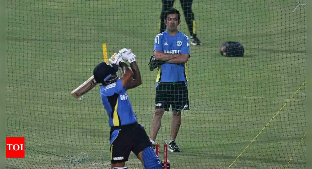 HE’S BACK: India’s T20 skipper Suryakumar Yadav is watched by coach Gautam Gambhir. (TOI Photo)