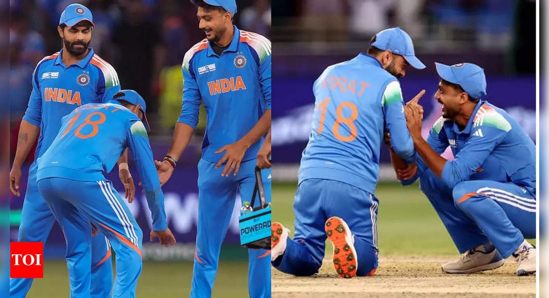 Williamson, who had scored a well-compiled 81 off 120 balls, attempted an aggressive stroke off Axar’s delivery but was completely beaten, allowing wicketkeeper KL Rahul to complete a simple stumping. As Axar celebrated the prized scalp, Kohli approached him and humorously bowed down to touch his feet in a gesture of respect, acknowledging the vital wicket. Axar, taken aback, attempted to evade the moment, leading to a brief, playful exchange between the two before they resumed their fielding positions.