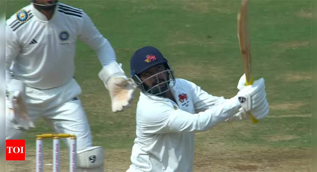 LUCKNOW: Rest of India‘s Abhimanyu Easwaran and Dhruv Jurel seemed to be coasting towards their respective landmarks. Abhimanyu was eyeing a double century while Jurel was inching closer to his own ton. But a couple of not-so-perfect sweep shots led to their downfall and soon after, RoI’s innings spiralled out of control as they lost six wickets for 23 runs in just 10 overs to be bowled out for 416 in their first innings, handing Mumbai a 121-run lead.
