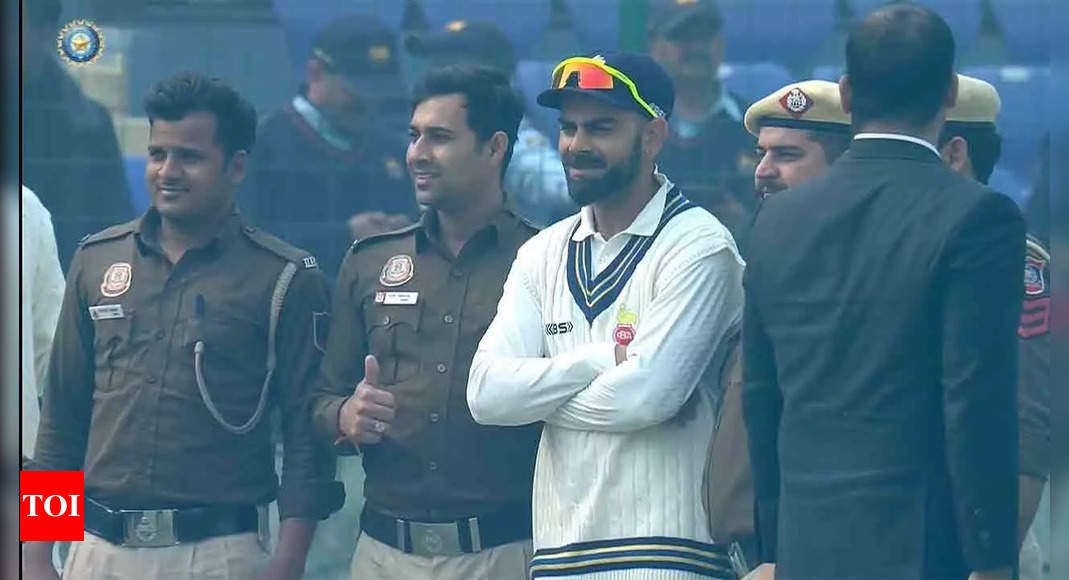 NEW DELHI: Three overly excited fans ran into the stadium to touch Virat Kohli‘s feet on Saturday during the third day of the Ranji Trophy match between Delhi and Railways at the Arun Jaitley Stadium.