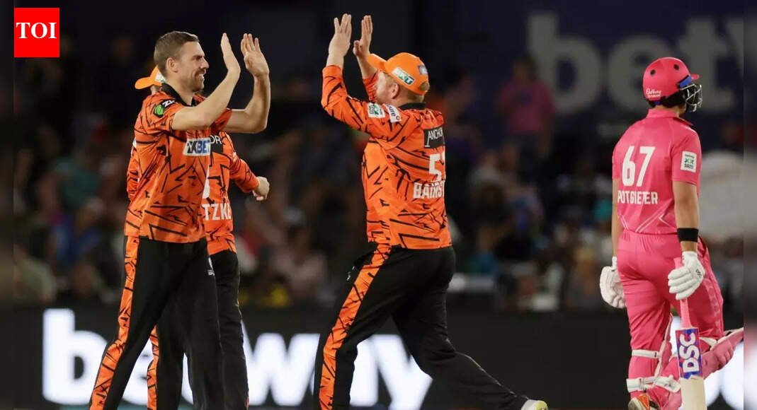 The result also marked the first time the Sunrisers have won their opening match of an SA20 season.Much of the damage had already been done with the bat, led by Jordan Hermann, who comfortably won the much-anticipated sibling duel at Boland Park. Hermann smashed an unbeaten 62 off just 28 balls, striking five fours and four sixes as the two-time champions posted a commanding 186 for 4.The left-hander put the finishing touches on the innings by taking 22 runs off Delano Potgieter’s final over, capping a near-perfect batting performance. Earlier, Quinton de Kock and Jonny Bairstow had set the tone with a fluent 66-run opening stand, scoring at better than a run a ball.The momentum never dipped. Matthew Breetzke and Hermann added another 73 runs for the fourth wicket, keeping the pressure firmly on the Royals before the late assault pushed the total well beyond reach.Hermann’s innings briefly put him in contention for Player of the Match honours, but that conversation shifted quickly once Anrich Nortje had the ball in hand.Paarl’s chase unravelled almost immediately. Marco Jansen, Adam Milne and Nortje tore through the top order inside the powerplay, reducing the hosts to 30 for 4 and effectively ending the contest within the first six overs.Nortje, in particular, looked back to his menacing best on his SA20 return after missing the previous two seasons through injury, charging in with pace and hostility. He finished with four wickets, leaving the Royals with no route back into the game.Paarl Royals will need to reset quickly, with little time to dwell on the collapse before facing Sunrisers Eastern Cape again in the return fixture at St George’s Park on New Year’s Eve.In SA20 today (December 28): Durban’s Super Giants vs MI Cape Town at 7 PM IST, LIVE on JioHotstar and Star Sports Network.