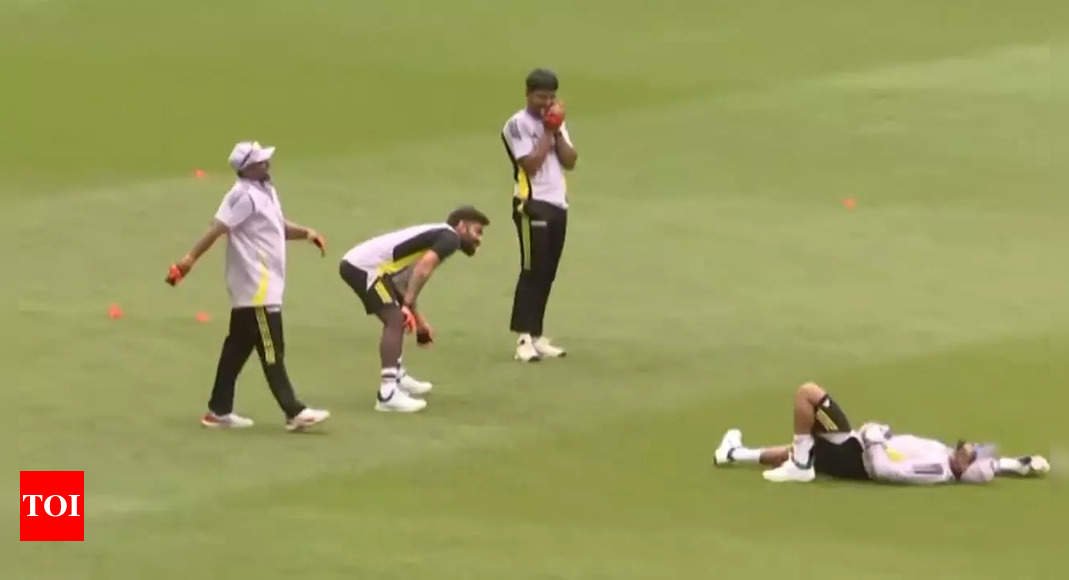 India’s practice session took a hilarious turn when Sarfaraz Khan grabbed attention with an unconventional catch during fielding drills.