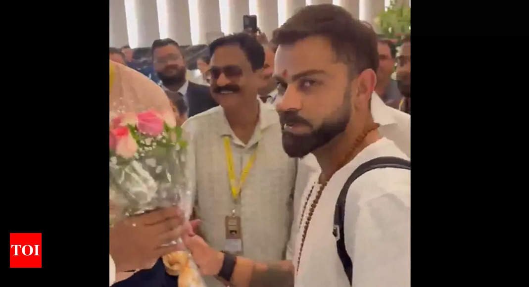 Like it is usually seen, a group of people, presumably the top officials of the hotel, had assembled to welcome the players. Just when one of them presented a bouquet of flowers to Kohli and the batting legend accepted it with a ‘thank you’, another official wanted to shake hands with the batting icon.