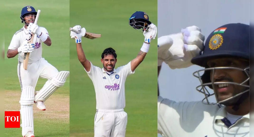 The salute has become Jurel’s signature, first seen during his maiden Test fifty against England earlier in 2024. His father, Nem Chand, is a retired Havildar of the Indian Army and a Kargil War veteran, making the gesture deeply personal. Jurel’s knock came in the company of Ravindra Jadeja, who remained unbeaten on 104. Together, the pair added 206 runs for the fifth wicket, missing out narrowly on the Indian record against West Indies for that position, which belongs to VVS Laxman and Sachin Tendulkar’s 214-run stand in Kolkata, 2002. Jurel’s innings featured 15 fours and three sixes before he edged Khary Pierre to the keeper late in the day.Watch his century celebration here KL Rahul also joined the run-scoring with his 11th Test century. His patient 100 off 197 balls steadied India earlier in the day after Shubman Gill fell for 50. Rahul, Jurel and Jadeja displayed contrasting styles, each bringing a unique approach as they clawed their way to their respective tons. While Rahul’s knock ended India’s long wait for a home hundred from him, Jadeja’s effort reinforced his consistency with the bat in recent months. By stumps, India had stretched to 448 for 5 in 128 overs, holding a massive lead of 286 runs. The West Indies spinners lacked the intensity to trouble India’s middle order.