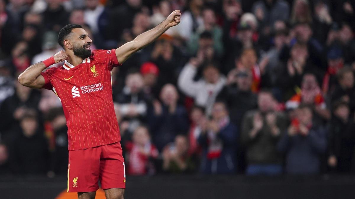 Salah set up Alexis Mac Allister’s goal with a pinpoint cross and then bagged his own with a rocket to the top corner for an astounding 49th goal in the Champions League.