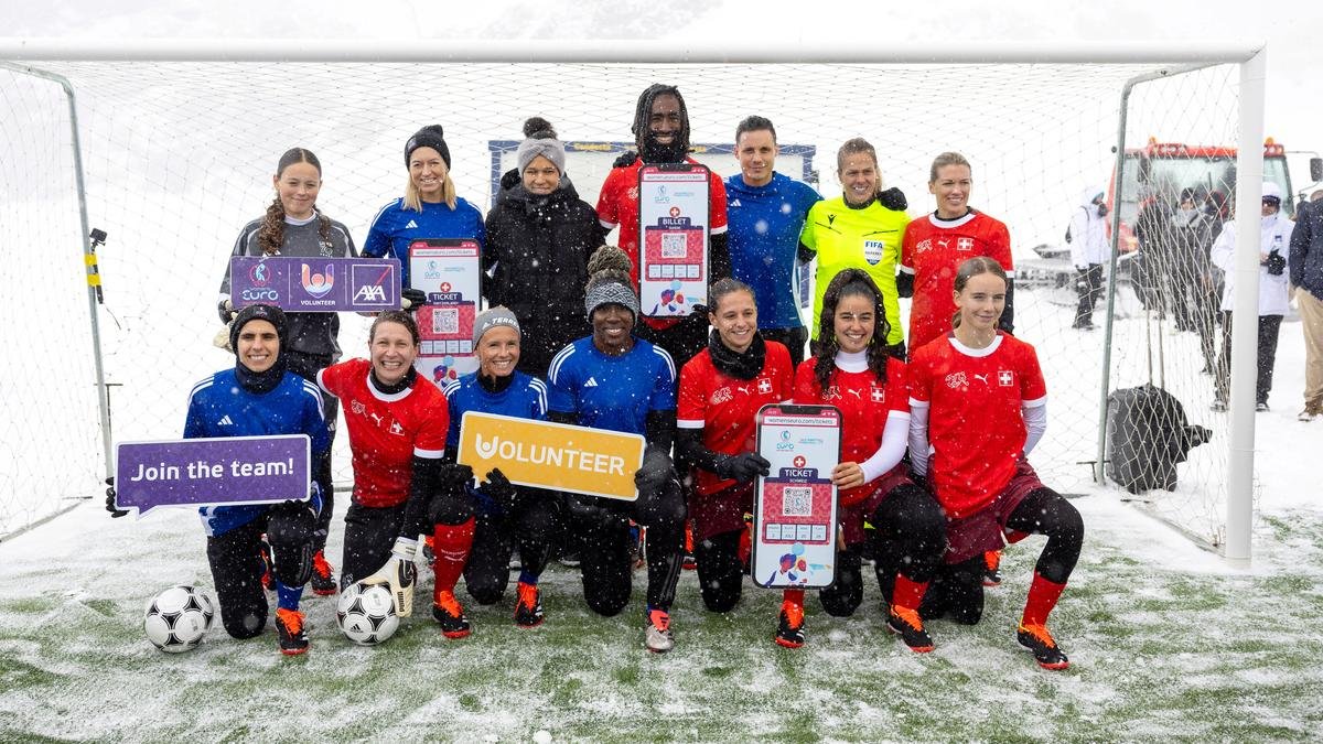 European football’s governing body launched the sale at the Jungfraujoch pass, 3,454 metres above sea level, with a game between women’s football greats and future stars.